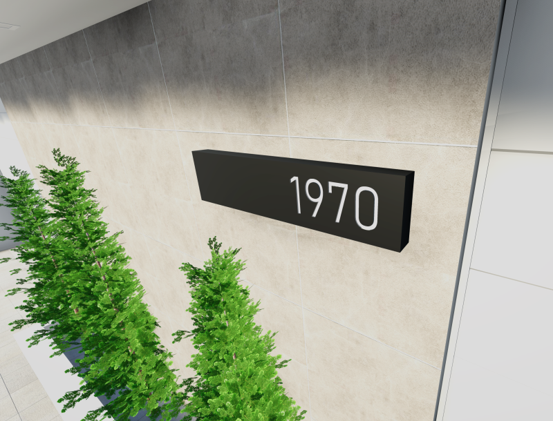 Material: Caixa de ACM, estrutura reforçada, números vazados em acrílico.